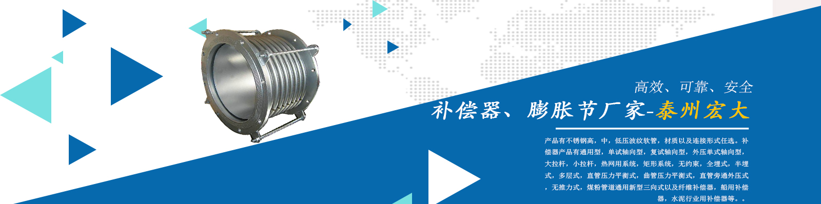 泰州市宏大機械設備有限公司是一個企業(yè)內部管理嚴謹,工作作風穩(wěn)健,職工素質水平較高,經濟實力雄厚,產品質量放心,外部形象良好的企業(yè)。本公司專業(yè)從事補償器廠家,膨脹節(jié)廠家,膨脹節(jié)補償器,其中有不銹鋼高,中,低壓波紋軟管,材質以及連接形式任選。補償器產品有通用型,單試軸向型,復試軸向型,外壓單式軸向型,大拉桿,小拉桿,熱網(wǎng)用系統(tǒng),矩形系統(tǒng),無約束,全埋式,半埋式,多層式,直管壓力平衡式,曲管壓力平衡…...